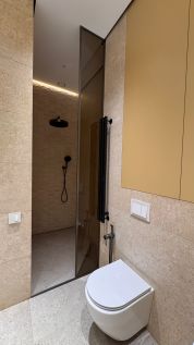 Jaga, системой аквастоп, фильтрами Гейзер Арагон, противопожарной системой (сплинкеры), теплые полы в санузлах, коридоре и кухне. Входная дверь СТАЛ усиленная со звукоизоляцией и электронным замком Mottura с открытием по отпечатку пальца.