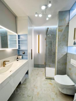 2. Санузлы: мебель на заказ, шкафы в потолок, подсветка полок, фурнитра Blum, фасады мдф эмаль, смесители Kueco, тумбы Kueco, аксессуары Kueco, подвесные унитазы TOTO и Villeroy.