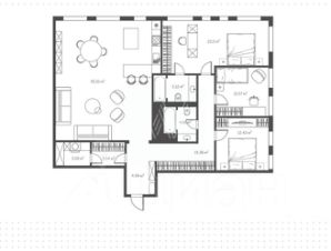 мастер спальня 24м, две детские комнаты, 2 су, гардеробные, постирочная.