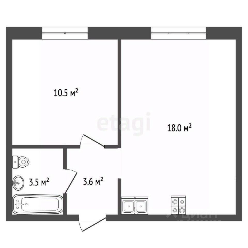 - Общая площадь 35.6 кв. м.