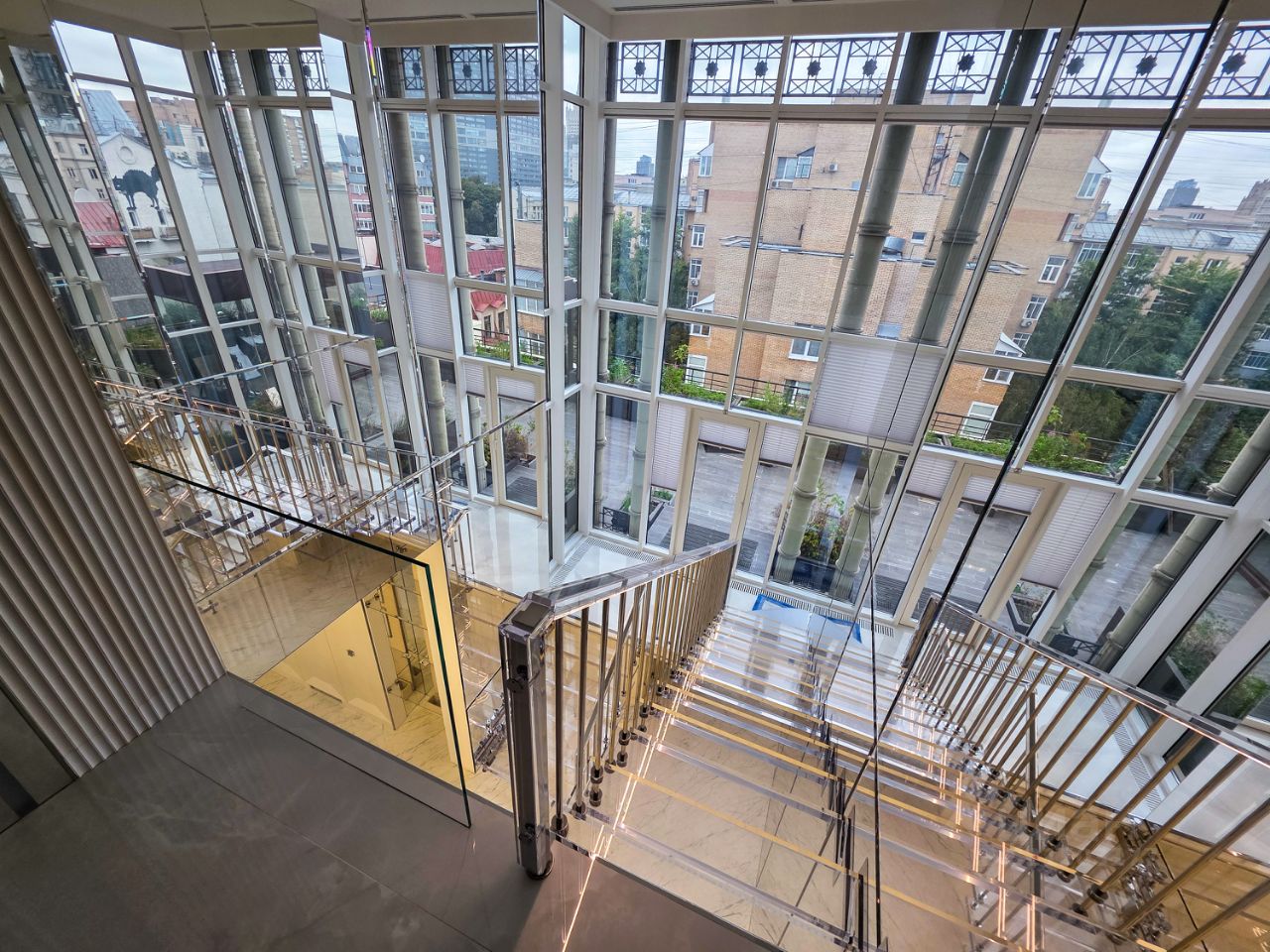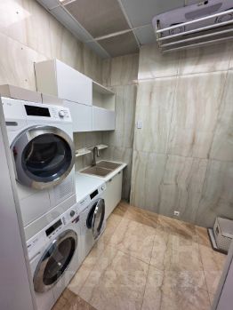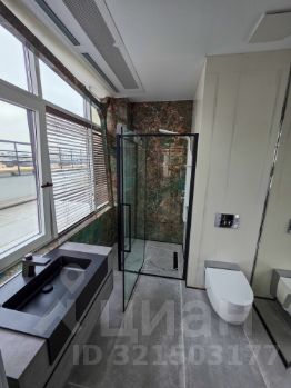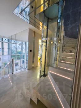 Квартира находится в клубном доме с охраняемой закрытой территорией, круглосуточным видеонаблюдением и системой контроля доступа. Пространство спроектировано с учётом максимального комфорта, эстетики и приватности. В интерьере использованы зеркала, натуральное дерево, мрамор, редкие сорта оникса, итальянские напольные покрытия, встроена техника Miele. Установлен персональный лифт, связывающий два уровня.
