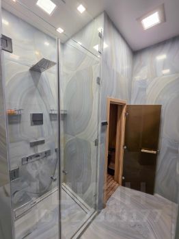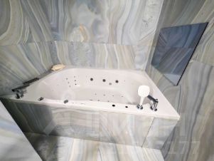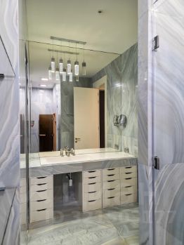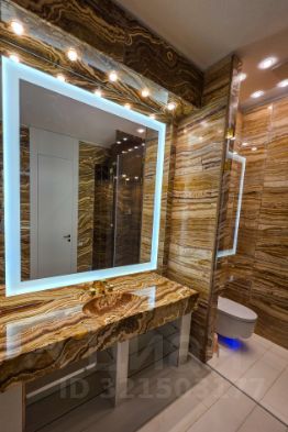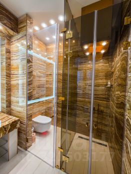 Один из санузлов полностью выполнен из редкого коричневого оникса