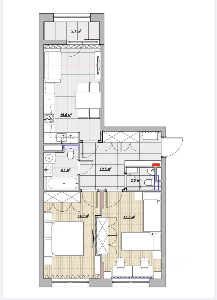 * Просторная кухня-гостиная для уютных семейных вечеров.