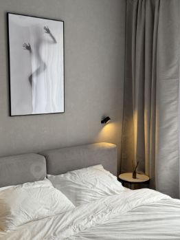 Встроенная мебель: кухонный гарнитур с матовым покрытием Soft Touch, встроенный шкаф с покрытием Soft Touch, гардеробная. Вся техника в квартире линейки Haier, чайник Smeg, телевизор. Квартиру делали для себя, всю мебель оставляем.
