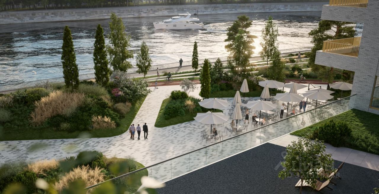 • Авторская концепция благоустройства квартала, интегрированного с Симоновской набережной Москвы-реки.