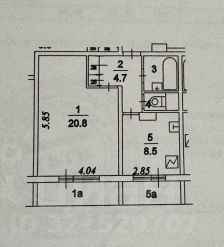 Просторная 1-комнатная квартира 39 кв.м. с чётким разделением на гостиную и изолированную спальню. Не студия!