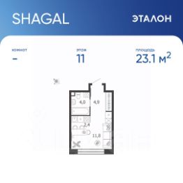 Продается квартира 345, по адресу г. Москва, ЮАО, Даниловский, ул. Автозаводская, вл. 23/75, корпус Жилой квартал Shagal, 3 очередь, 5 этап, корпус 6 в Shagal на 11 этаже, с площадью 23.1 м2.