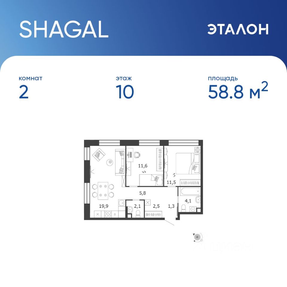 58,8 м²
