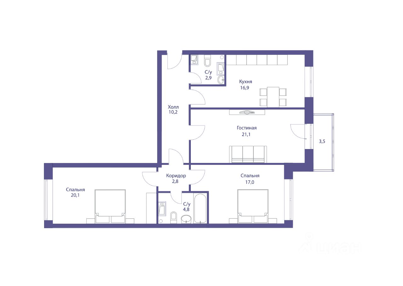Продается просторная трешка без отделки в современном ЖК бизнес-класса Сердце Столицы!