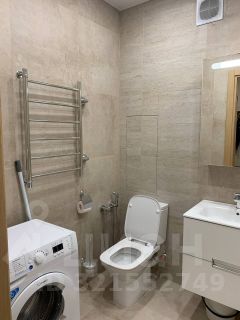 - Просторный совмещённый санузел с установленной стиральной машиной.