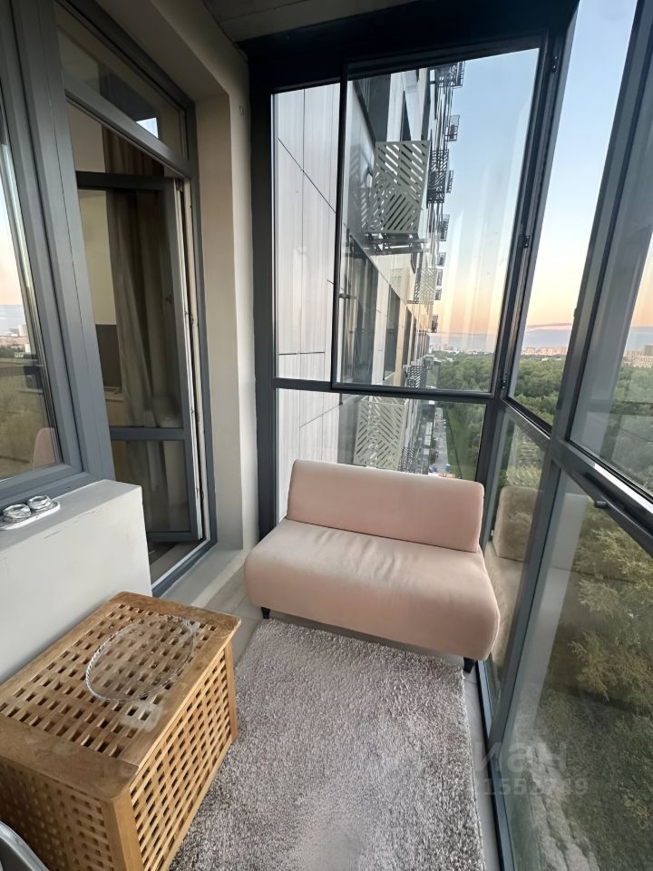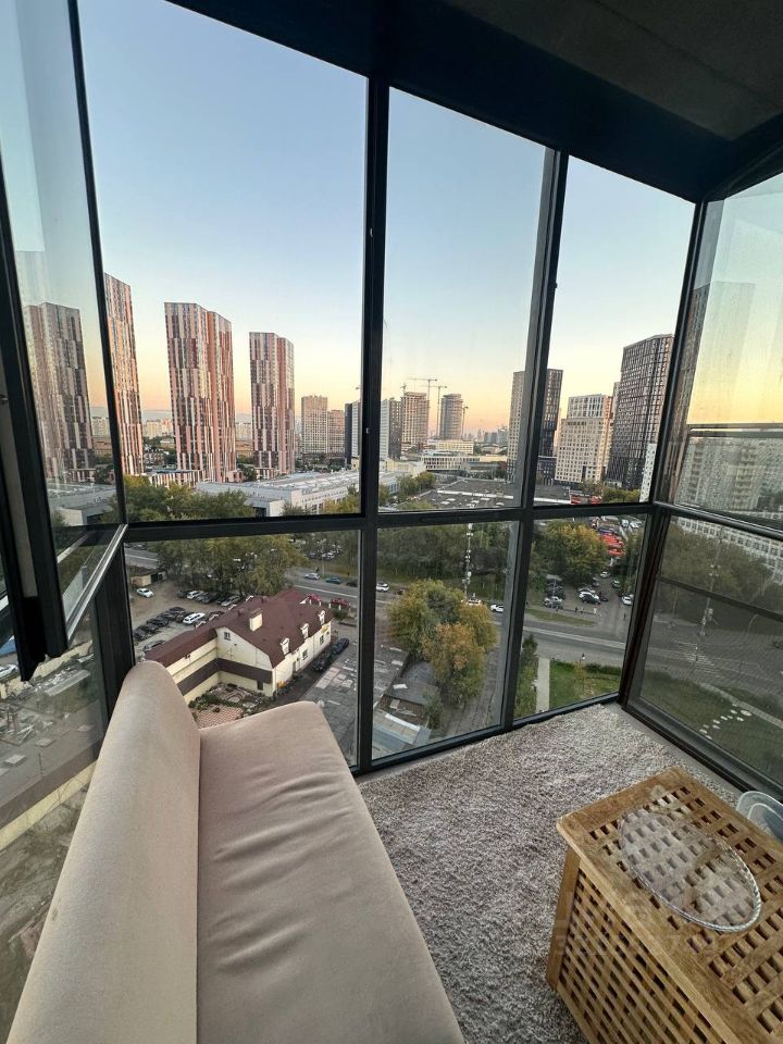 - Уникальный стеклянный балкон с диваном и панорамным видом на город.
