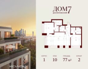 Продается 2-к квартира общей площадью 77.00 кв.м на 10 этаже в жилом квартале премиум-класса "Дом 7 Даниловский".
