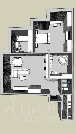 Две изолированные комнаты, мокрые точки. Возможна перепланировка, согласований не требуется. Есть три дизайн проекта.