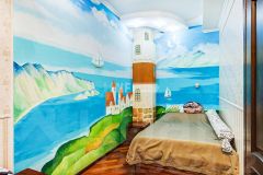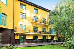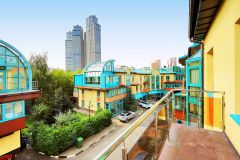 Панорамные окна выходят в тихий, зелёный двор, создавая атмосферу уюта и приватности.