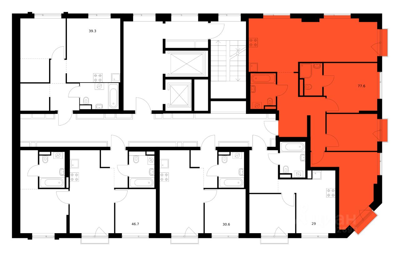 Продаётся 3-комн. квартира площадью 77,6 кв.м на 17 этаже 17 этажного дома (Корпус 2.3, Секция 2) проекта ПИК Лосиноостровский парк. Светлый просторный подъезд на уровне земли, функциональная планировка, большие окна, без отделки.