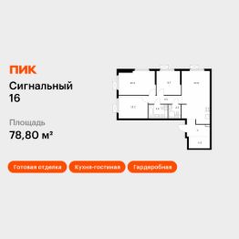 Продаётся 3-комн. квартира площадью 78,8 кв.м на 28 этаже 33 этажного дома (Корпус 2.2, Секция 4) проекта ПИК Сигнальный 16. Светлый просторный подъезд на уровне земли, функциональная планировка, большие окна, c отделкой.