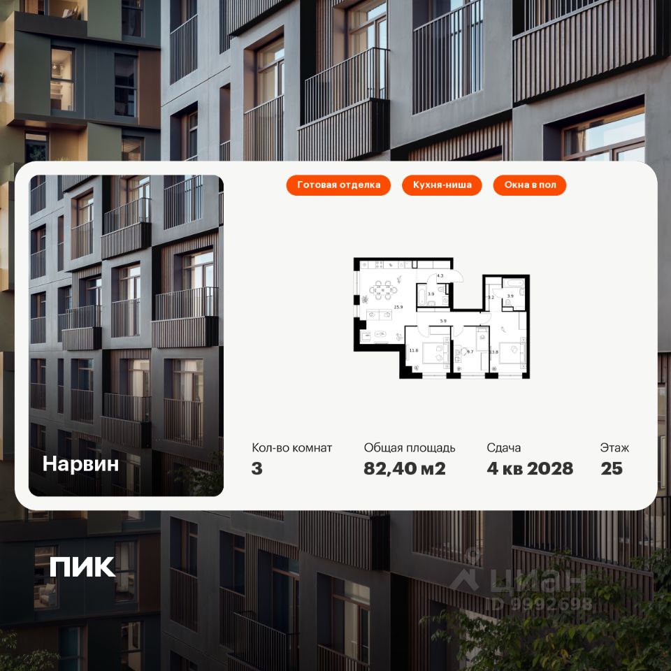Новостройка! Продается 3-комн. кв-ра площадью 82,4 кв.м, (Корпус 1.3, Секция 3) 25 этаж 38-этажного дома в Нарвин от ПИК. Новый проект ПИК Серии плюс "Нарвин" возводится в Головинском районе Москвы.