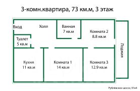 Продаю свою 3-комнатную квартиру — 73 м², 3/17 этаж.