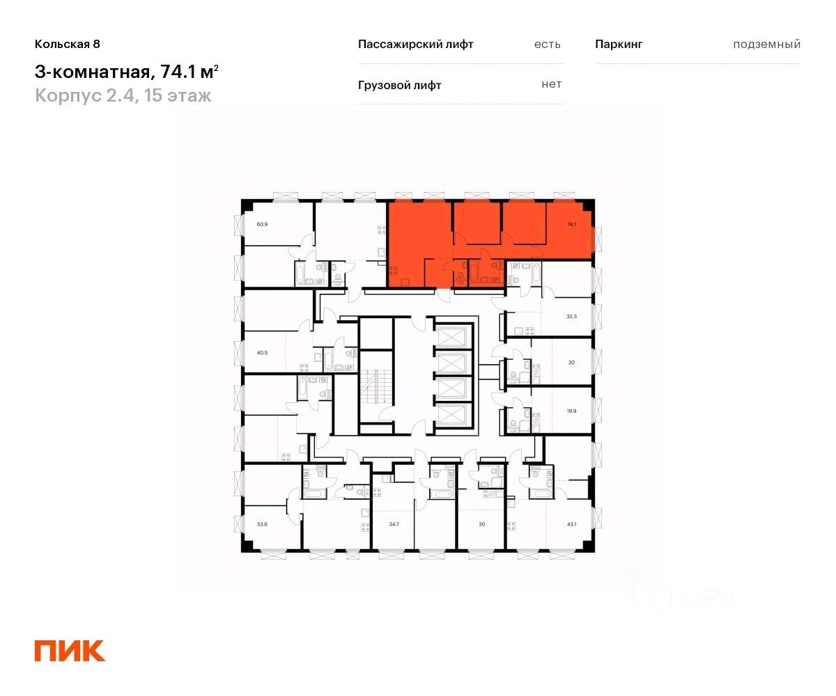 Продаётся 3-комн. квартира площадью 72,3 кв.м на 15 этаже 33 этажного дома (Корпус 2.4, Секция 1) проекта ПИК Кольская 8. Светлый просторный подъезд на уровне земли, функциональная планировка, большие окна, c отделкой.