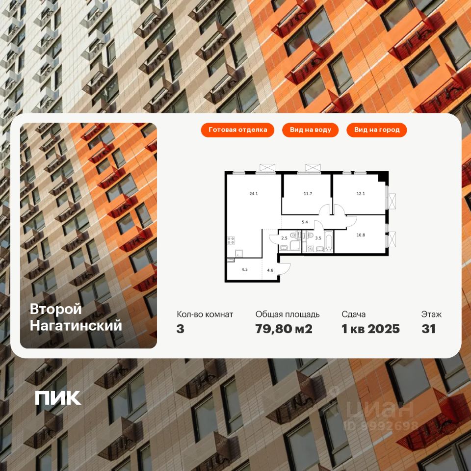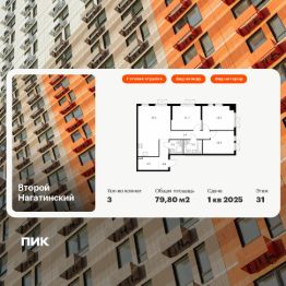 Продаётся 3-комн. квартира площадью 79,8 кв.м на 31 этаже 33 этажного дома (Корпус 7, Секция 3) проекта ПИК Второй Нагатинский. Светлый просторный подъезд на уровне земли, функциональная планировка, большие окна, c отделкой.