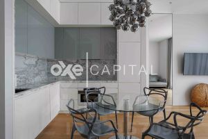 • Отделка выполнена по индивидуальному проекту с использованием натуральных материалов (мрамор, дерево) и современной инженерии. Квартира полностью меблирована итальянской мебелью и оснащена качественной техникой, готова к проживанию.