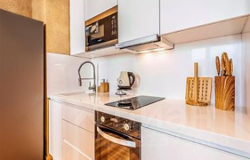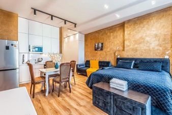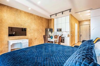 Дизайнерский ремонт выполнен с использованием премиальных материалов и передовых технологий, качественная дорогая мебель из массивов лучших пород дерева.