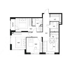 Квартира без ремонта, что дает вам возможность воплотить все ваши дизайнерские мечты. Просторная кухня площадью 14,7 кв. м позволит создать уютное место для семейных обедов. Имеется одна лоджия, где можно обустроить зону для отдыха. Два совмещенных санузла обеспечат комфортное проживание для большой семьи.