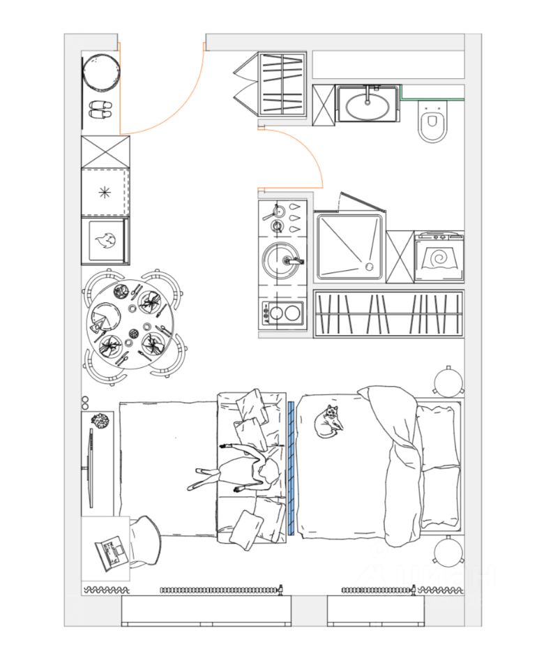 Апартаменты без ремонта, что дает возможность воплотить все ваши дизайнерские идеи. Планировка студии позволяет эффективно использовать пространство. Покупателю в подарок предоставим дизайнерскую планировку со всеми размерами и чертежами.