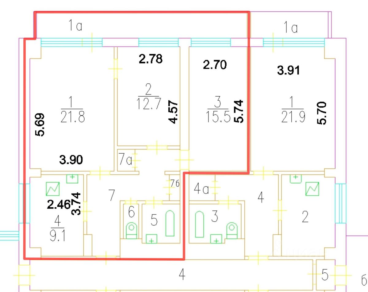 Функциональная изолированная планировка площадью 75,1 кв. м + балкон 10.3м. Комнаты правильной формы: 21,8м., 15,5м. и 12,7м., просторная кухня 9,1м., раздельный сан. узел. и множество встроенных мест хранения.