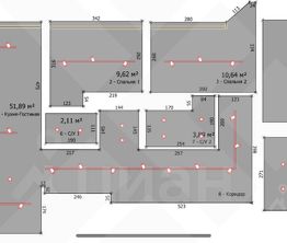 - 3 санузла: 2 совмещённых и 1 раздельный с ванной;