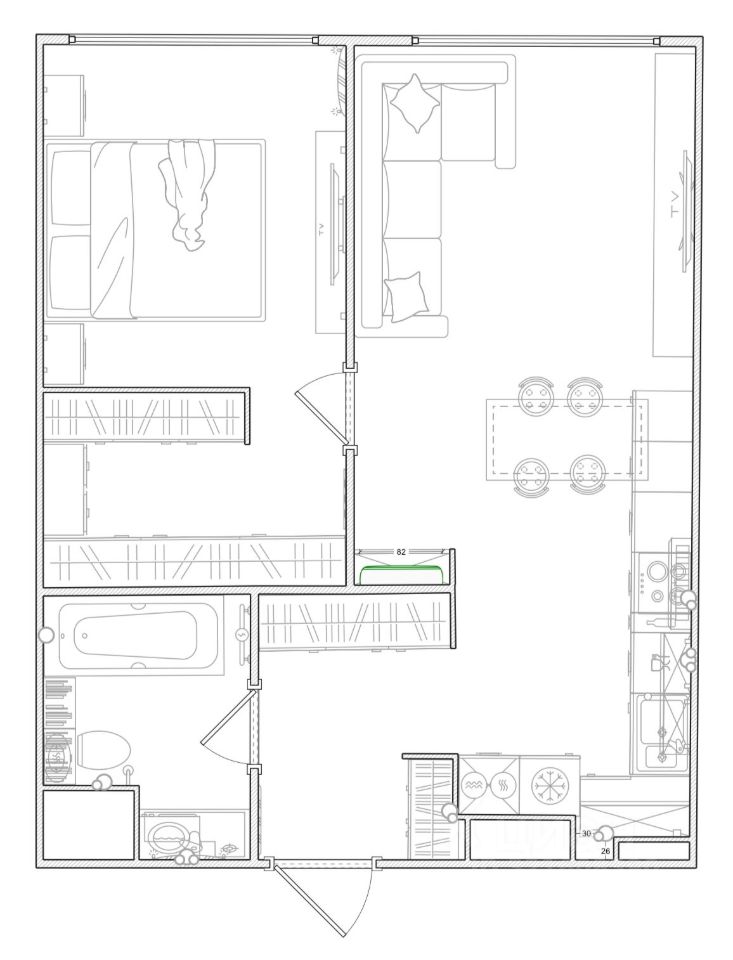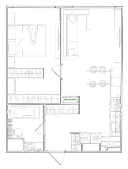 Общая площадь квартиры 52,2 м2. Высота потолков 3 метра. Высота панорамных окон 2,7 м, предусмотрена функция проветривания. Вид на Матвеевский лес. На каждом этаже есть технические балконы для установки системы кондиционирования. Пятиуровневый подземный паркинг, восемь скоростных лифтов в каждой башне.