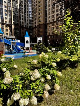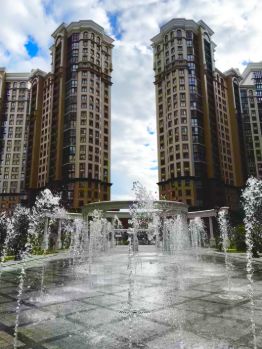 Закрытая просторная территория двора, с пропускной системой, во дворе фонтан с подсветкой, гольф-поле, беговая дорожка, поле для футбола, детская площадка, амфитеатр и ландшафтный дизайн.
