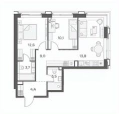 Просторная кухня-гостинная 13,8 кв м
