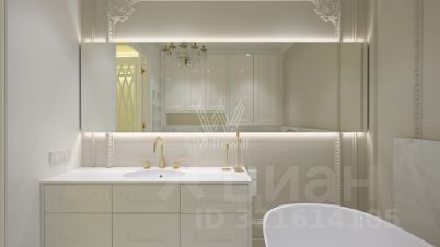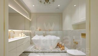 Выполнен стильный ремонт в светлых тонах. Комнаты полностью меблированы и укомплектованы всей необходимой техникой от европейских брендов. Здесь каждая деталь продумана, чтобы создавать атмосферу элегантности и тихой роскоши: кухонный остров из натурального мрамора, молдинги и лепнина на стенах, эффектные хрустальные люстры, картины, мебель с изысканными деталями, оникс и смесители из латуни в ванной комнате.