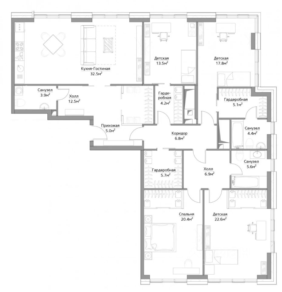 4 изолированные комнаты