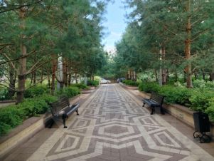 Зеленый и просторный двор дома оборудован современной детской площадкой, фитнес-тренажерами, прогулочными дорожками, зонами отдыха, огороженным спортивным полем. Двор без машин.