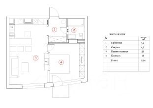 Планировка: просторная кухня-гостиная, спальня, санузел с ванной, холл с вместительным шкафом-купе, балкон. Оборудована система хранения. Высота потолков 3,1 м. Окна квартиры выходят в сторону двора с красивым видом на город и деловой центр Москва-Сити.