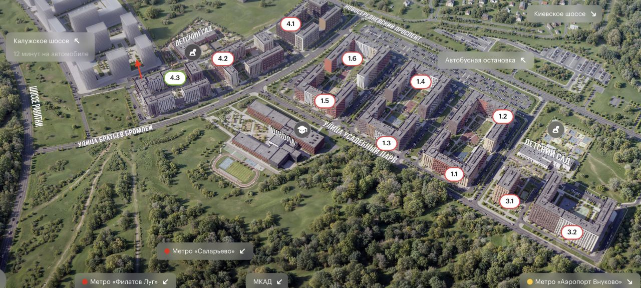 10 мин. Внуково/15 мин. Филатов Луг/15 мин. Саларьево.