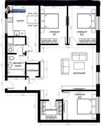 Продается большая и уютная квартира в сталинском доме с тремя спальнями (12+13+9 кв.м) и гостиной (21 кв.м.)