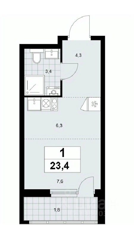 Студия, 23,4 м²