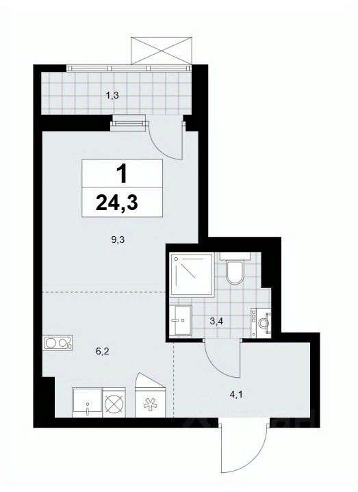 Студия, 24,3 м²