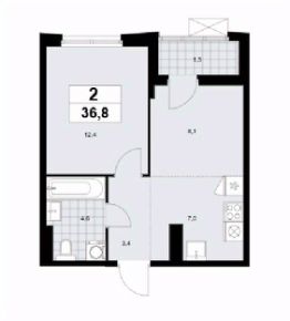 Продаётся 2-комнатная квартира в строящемся доме (Дом 6 Корпус 1.1), срок сдачи: IV-кв. 2025, общей площадью 36.8 кв.м., на 17 этаже. Жилой комплекс "Дзен-кварталы" от застройщика "А101" в городе Москва на улице Александры Монаховой.