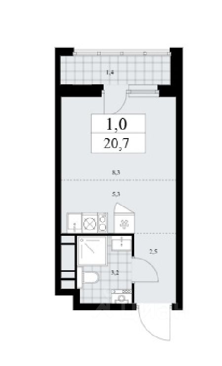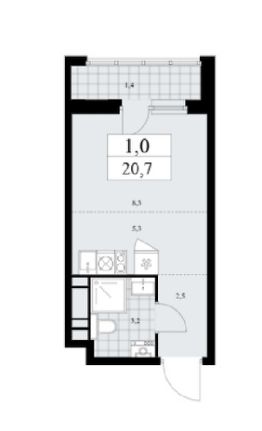 Студия, 20,7 м²