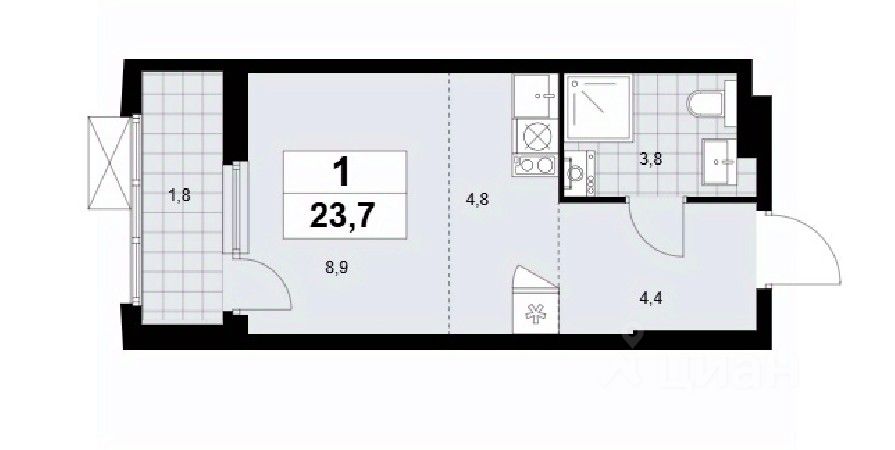 Продаётся студия в строящемся доме (Дом 6 Корпус 2.1), срок сдачи: IV-кв. 2025, общей площадью 23.7 кв.м., на 14 этаже. Жилой комплекс "Дзен-кварталы" от застройщика "А101" в городе Москва на улице Александры Монаховой.