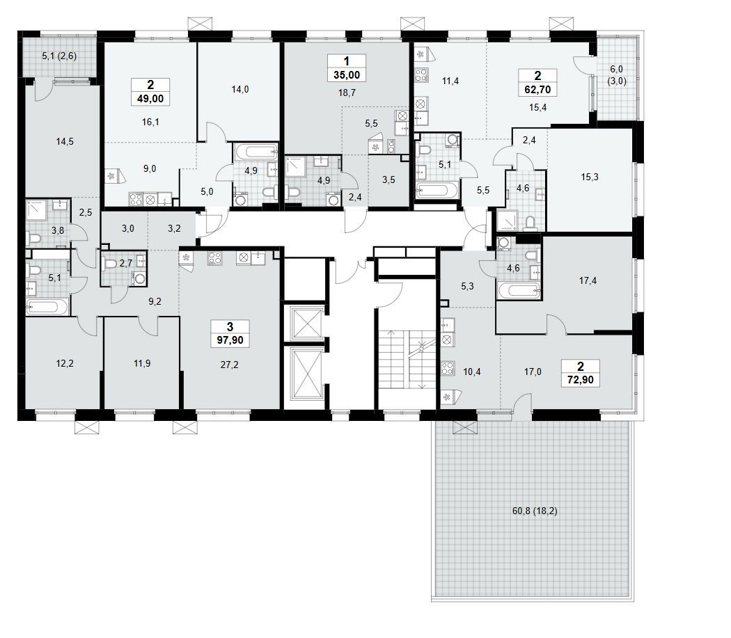 3-комн. от 54,9 м²
