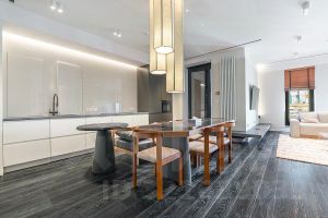 Предлагаем вашему вниманию уникальную трехкомнатную квартиру в одном из самых престижных районов Москвы по адресу: улица Усачёва, 15. Общая площадь квартиры составляет 111.5 кв. м + терраса, она расположена на 12 этаже 13-этажного монолитно-кирпичного дома, построенного в 2022 году. Высокие потолки в 3.3 метра создают ощущение простора и свободы. В доме предусмотрены пассажирский и грузовой лифты, а также удобный мусоропровод.