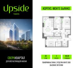 Продаётся 3-комнатная квартира площадью 98.28 кв.м на 38 этаже 46 этажного корпуса Монте Бьянко в квартале небоскребов "Upside Towers". В квартире отделка White-box, c видом на Бизнес-парк Останкино, прогулочный бульвар, детский сад, школу, Ботанический сад, Останкинскую Башню, Звездный бульвар, ВДНХ, парк Сокольники. Номер квартиры Г3801.