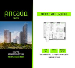 Продаётся 2-комнатная квартира площадью 58.66 кв.м на 42 этаже 46 этажного корпуса Монте Бьянко в квартале небоскребов "Апсайд Тауэрс". В квартире предчистовая отделка, c видом на Звездный бульвар, Останкинскую Башню, ВДНХ, корпус Эверест, Ландшафтный парк. Номер квартиры Г4205.
