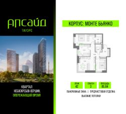 Продаётся 3-комнатная квартира площадью 85.84 кв.м на 42 этаже 46 этажного корпуса Монте Бьянко в квартале небоскребов "Апсайд Тауэрс". В квартире предчистовая отделка, c видом на Корпус Эльбрус, Бизнес-парк Останкино, прогулочный бульвар, детский сад, школу, Ботанический сад, Останкинскую Башню Центр, Москва-Сити. Номер квартиры Г4211.