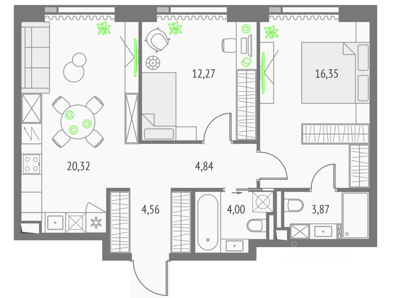 Покупая квартиру даже самого минимального размера в Upside Towers, вы получаете в пользование 2 000 м² бесплатных общественных пространств.